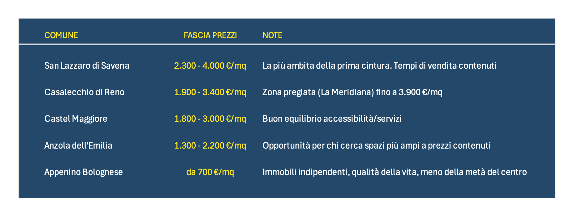Prezzi delle case nella provincia di Bologna