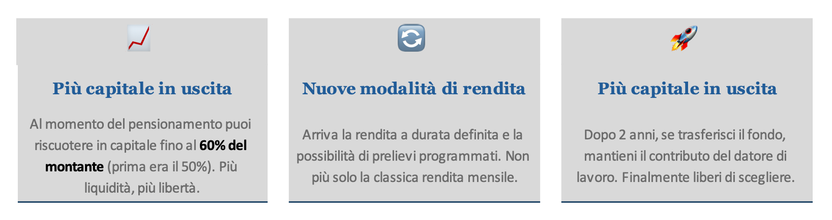Vengono inoltre introdotte nuove modalità di erogazione della rendita, tra cui la "rendita a durata definita" basata sull'aspettativa di vita e la
