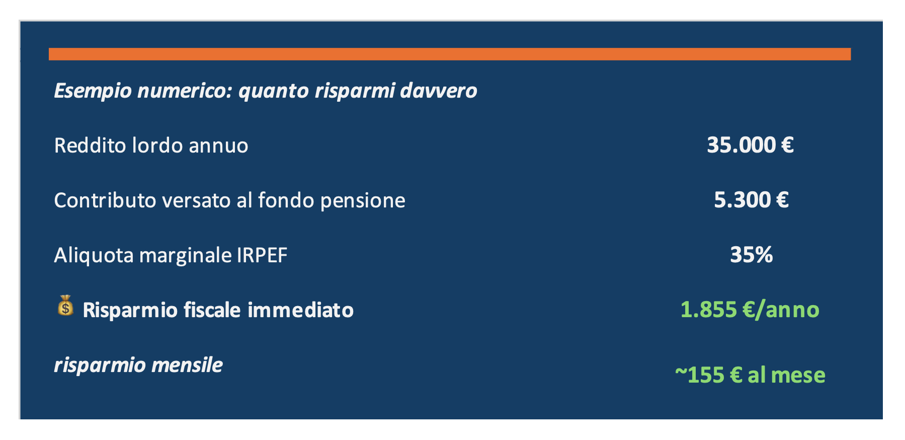 Immagina di guadagnare 35.000 euro lordi annui e di versare 5.300 euro nel tuo fondo pensione.